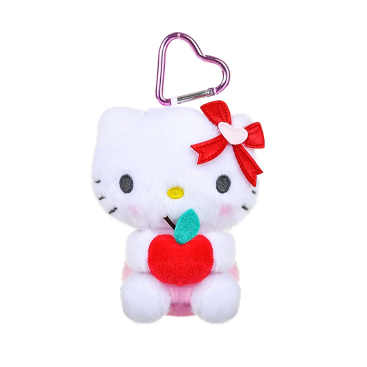 Hello Kitty: Το Hello Kitty είναι λευκό. Φοράει ένα ροζ φόρεμα και κρατάει ένα μεγάλο κόκκινο μήλο στην αγκαλιά του. Οι εκφράσεις του είναι πολύ ευαίσθητες και όλες ραμμένες με νήμα.